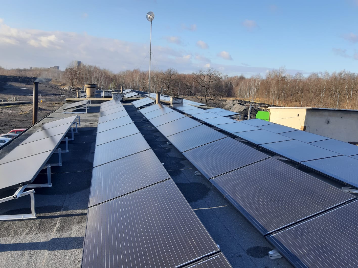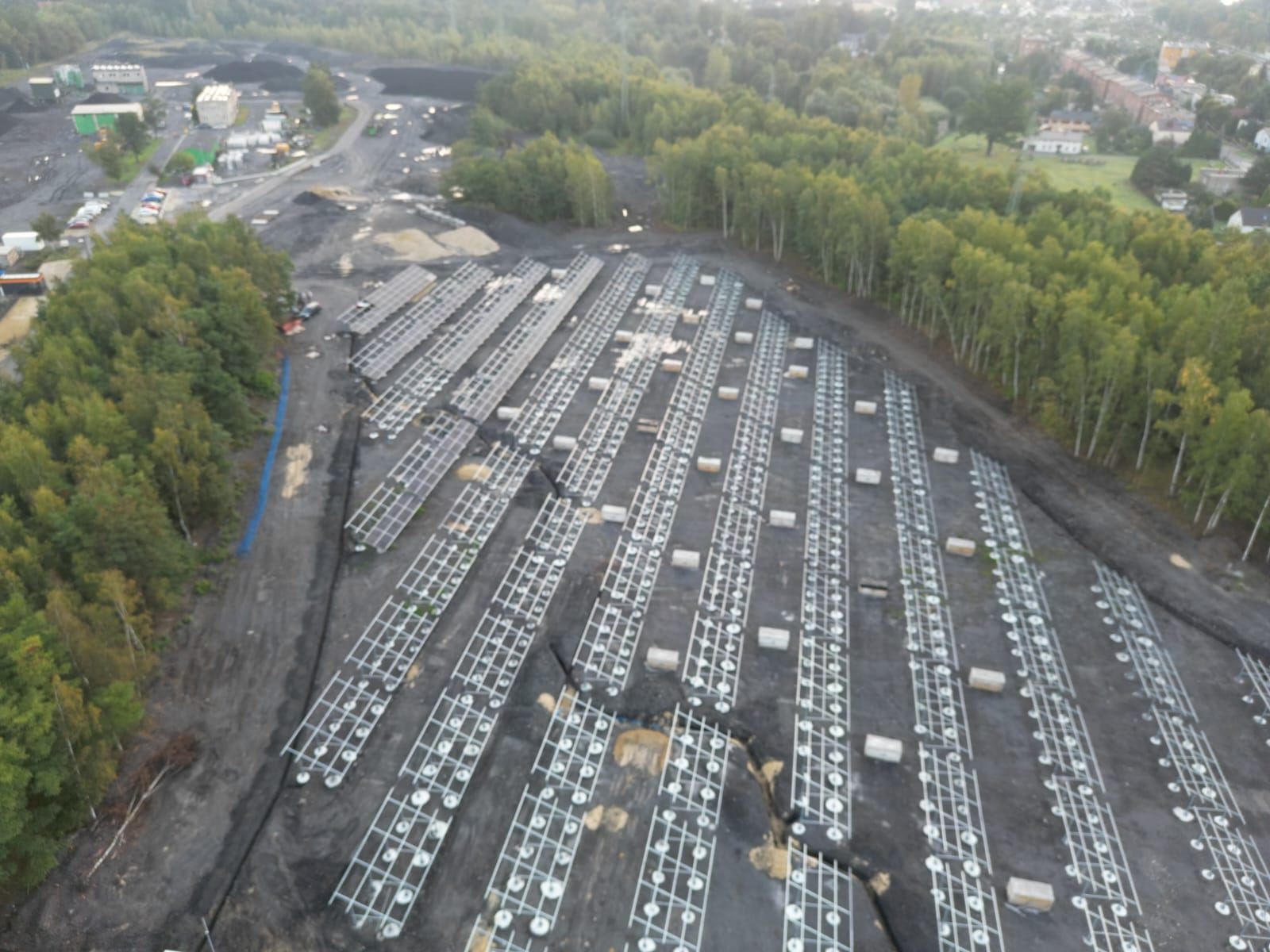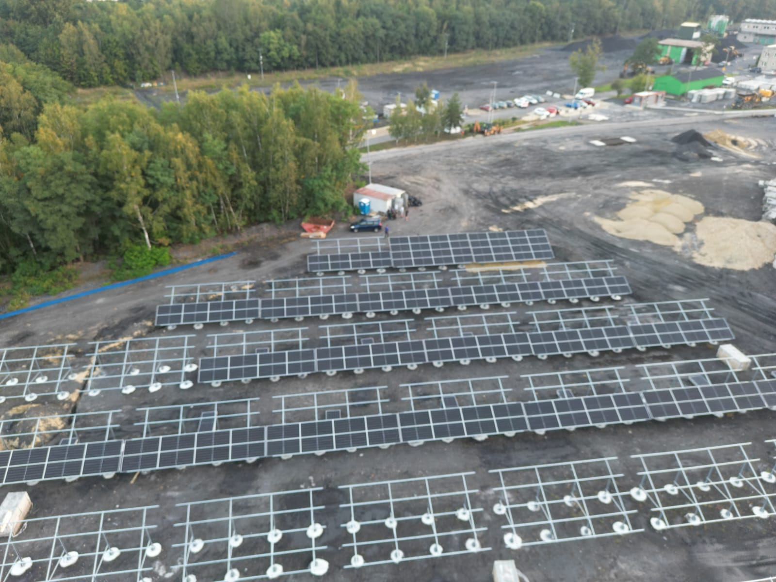 Teren inwestycji to obszar poprzemysłowy, na którym przez wiele lat prowadzono działalność górniczą. Ze względu na niestabilne podłoże – będące dawniej osadnikiem – konieczne było wykonanie specjalnych prac przygotowawczych oraz zastosowanie fundamentów w postaci betonowych pali o długości ok. 1 metra i średnicy ponad 0,5 metra. Rozwiązanie to zapewniło trwałe i bezpieczne posadowienie konstrukcji wsporczej pod instalację PV i może być stosowane w podobnych warunkach geotechnicznych.
