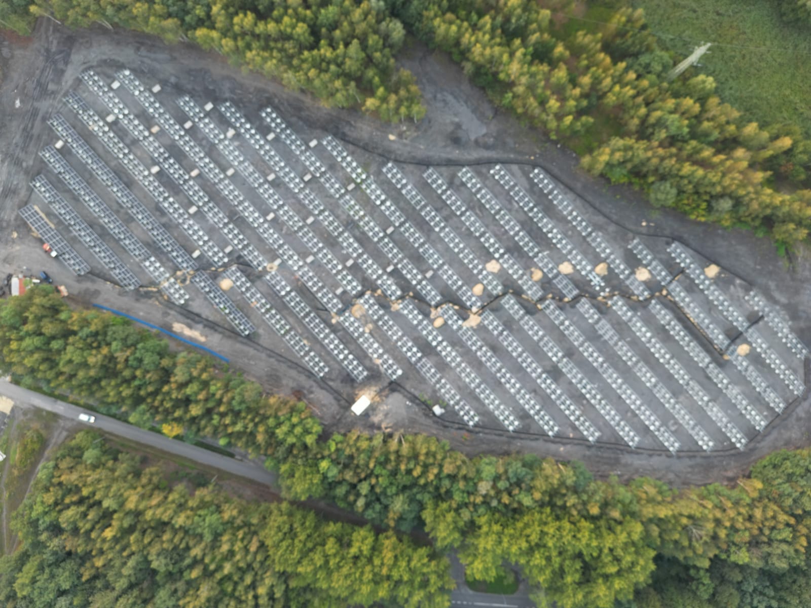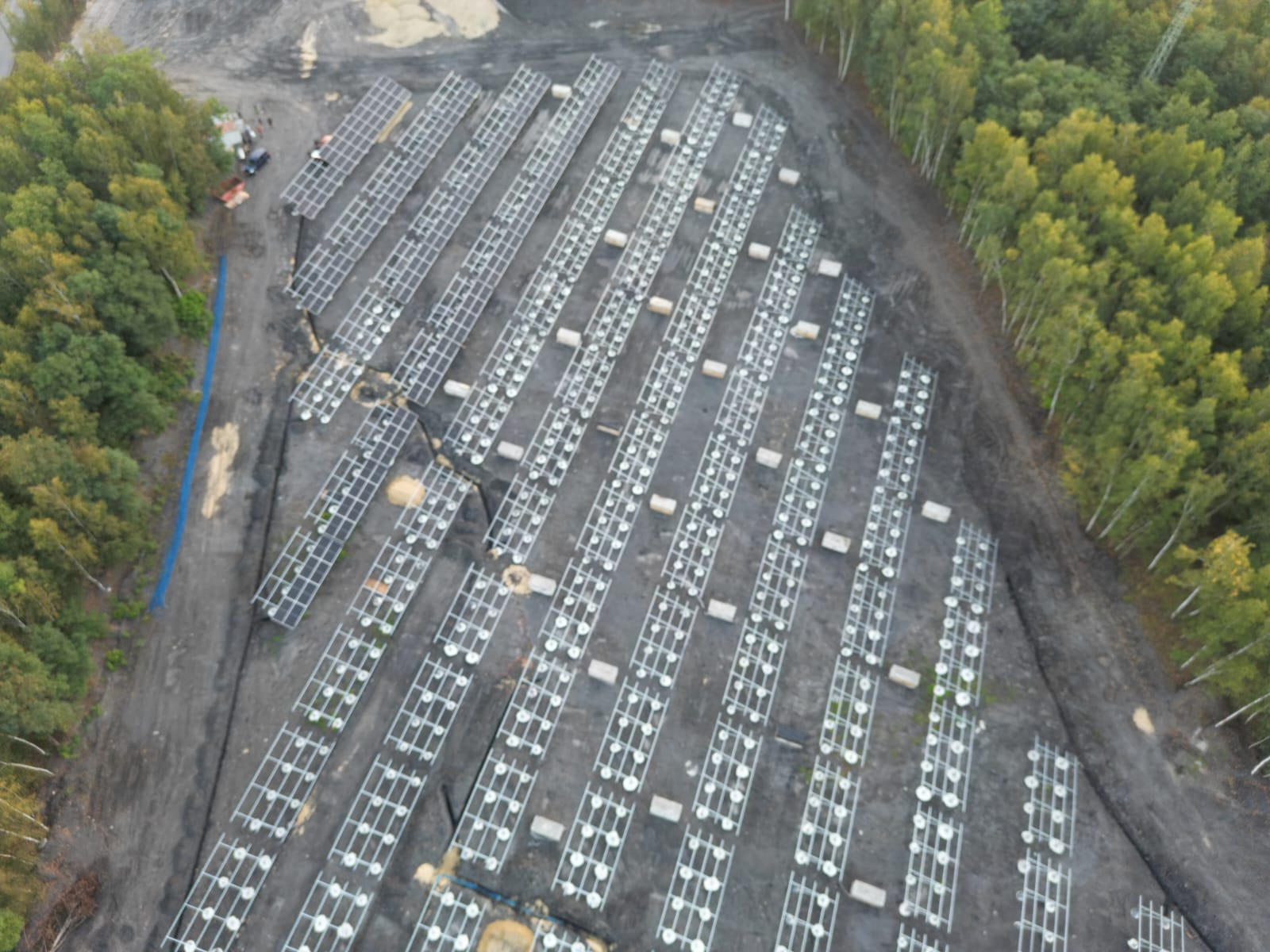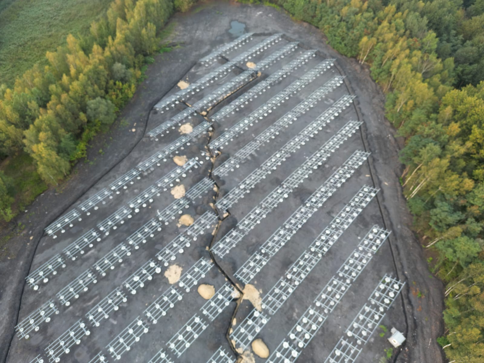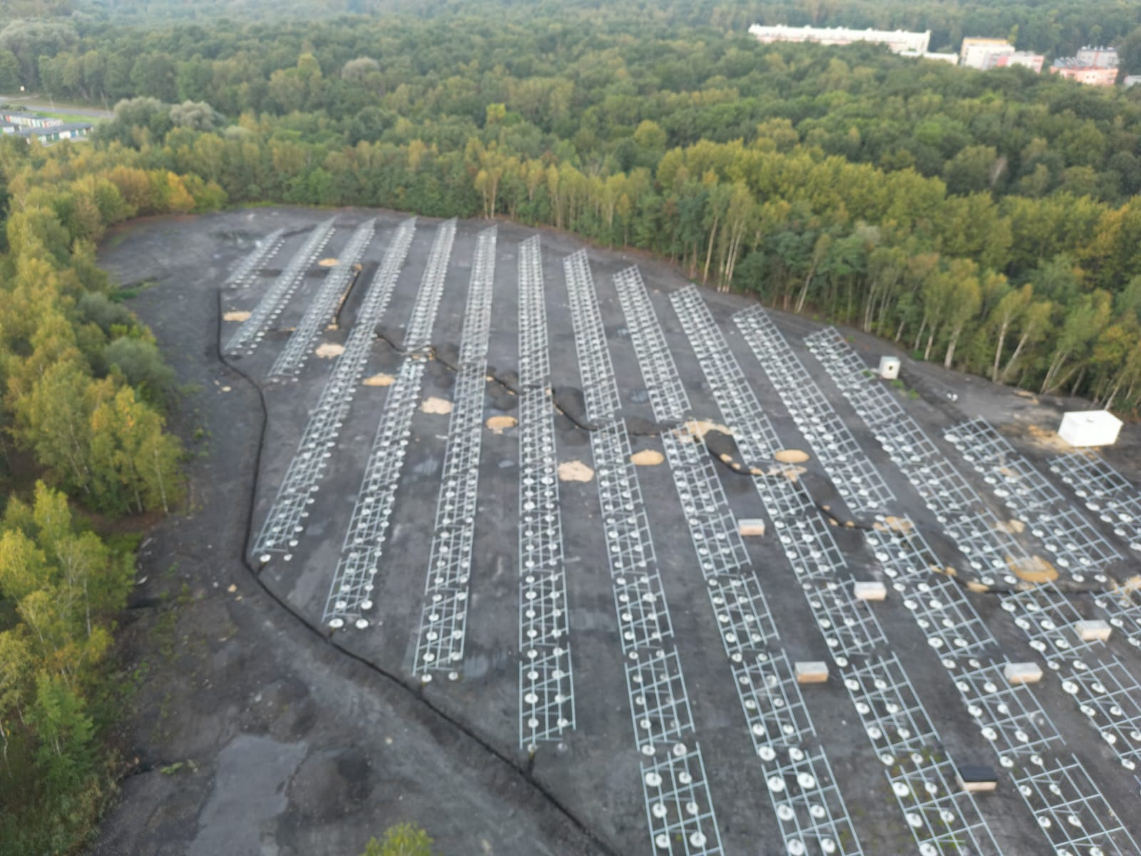 Teren inwestycji to obszar poprzemysłowy, na którym przez wiele lat prowadzono działalność górniczą. Ze względu na niestabilne podłoże – będące dawniej osadnikiem – konieczne było wykonanie specjalnych prac przygotowawczych oraz zastosowanie fundamentów w postaci betonowych pali o długości ok. 1 metra i średnicy ponad 0,5 metra. Rozwiązanie to zapewniło trwałe i bezpieczne posadowienie konstrukcji wsporczej pod instalację PV i może być stosowane w podobnych warunkach geotechnicznych.